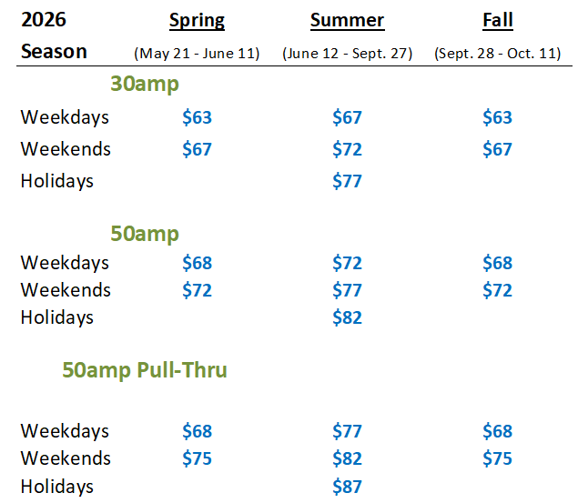 All Sites are Full Hookup (include water, sewer, and electric)